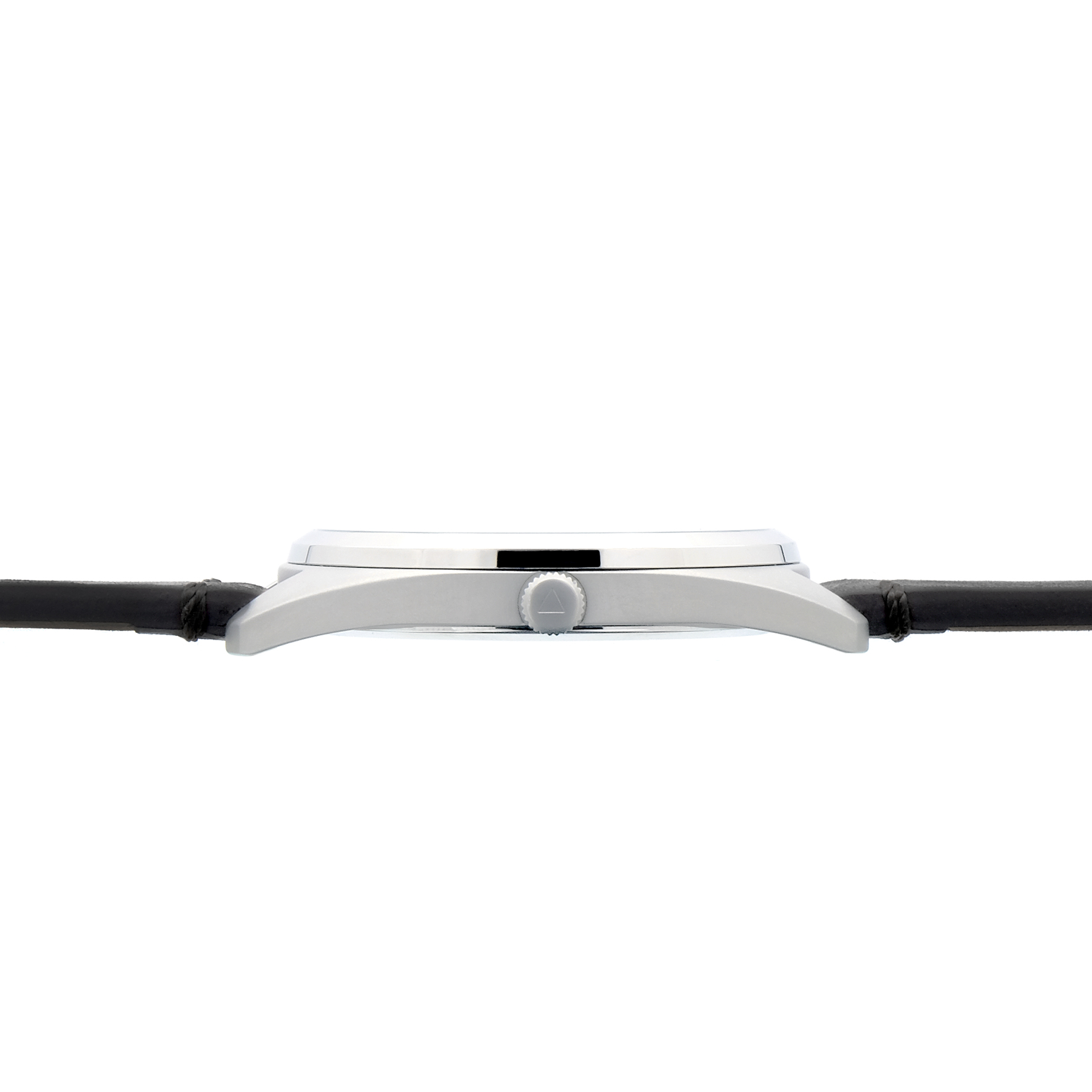 Ich bin mit einem dunkelbraunen Lederarmband ausgestattet