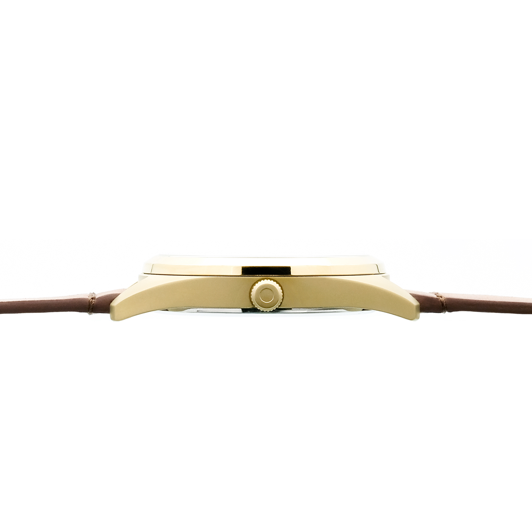 Ich bin mit einem braunen Lederarmband ausgestattet