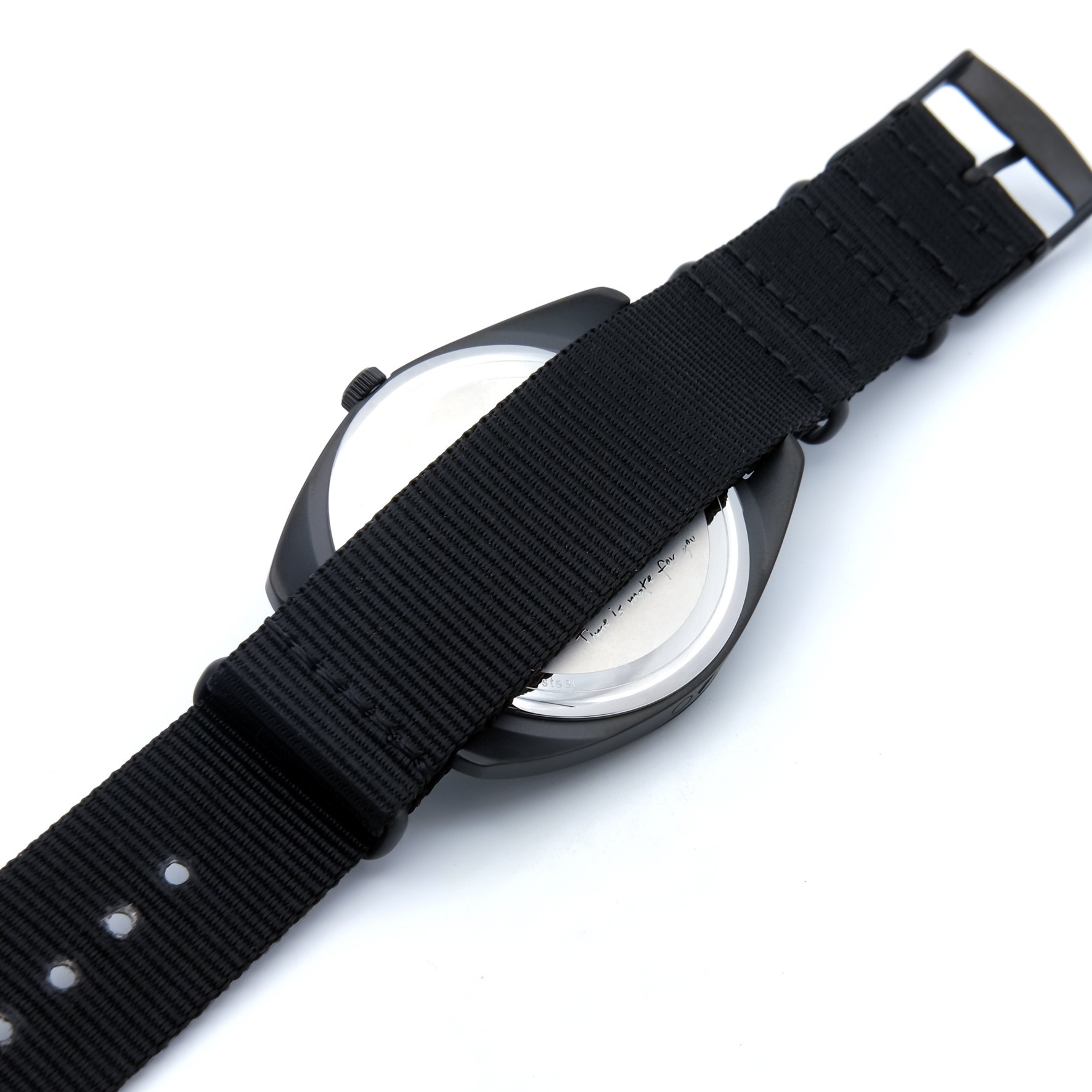 Ich bin mit einem schwarzen Natoarmband ausgestattet