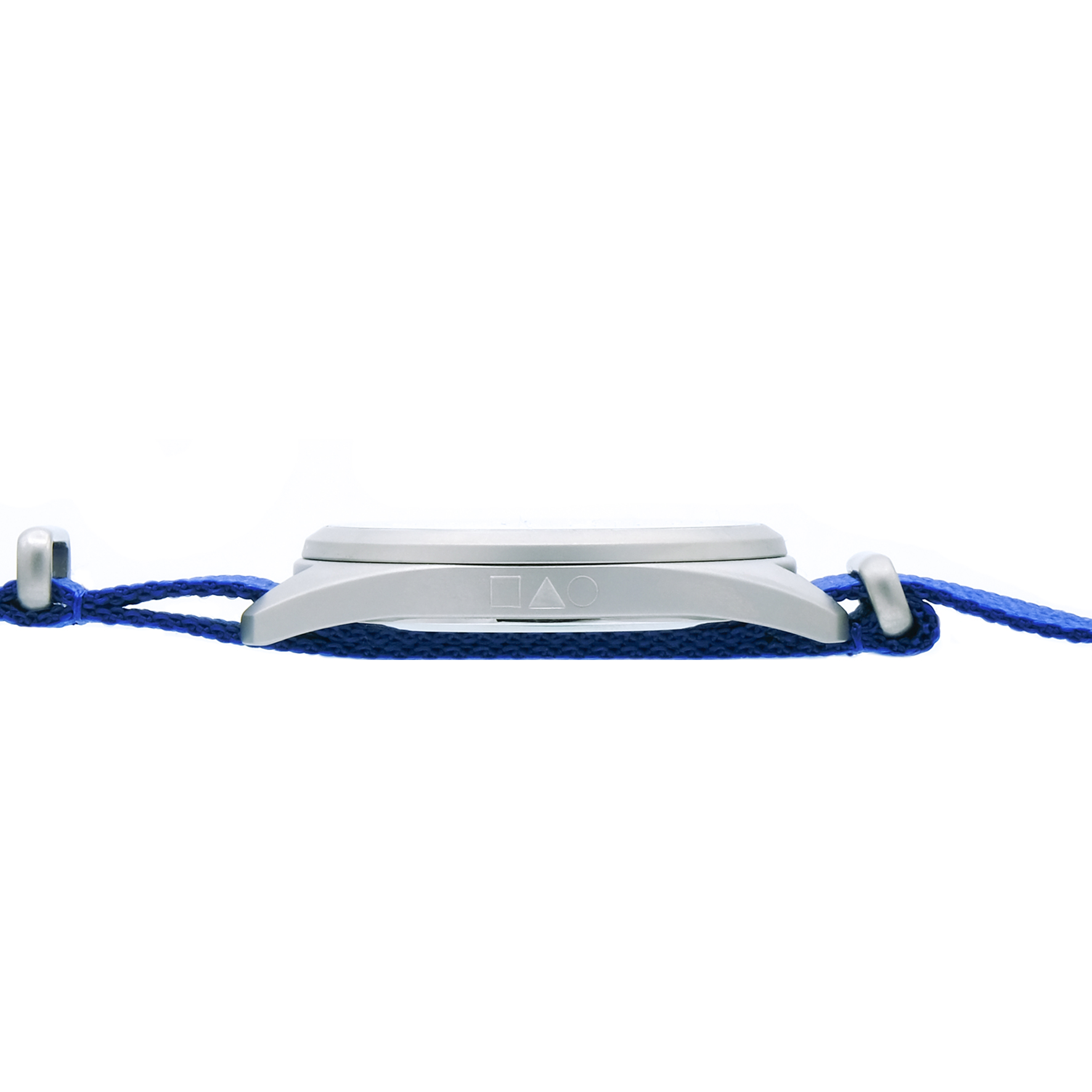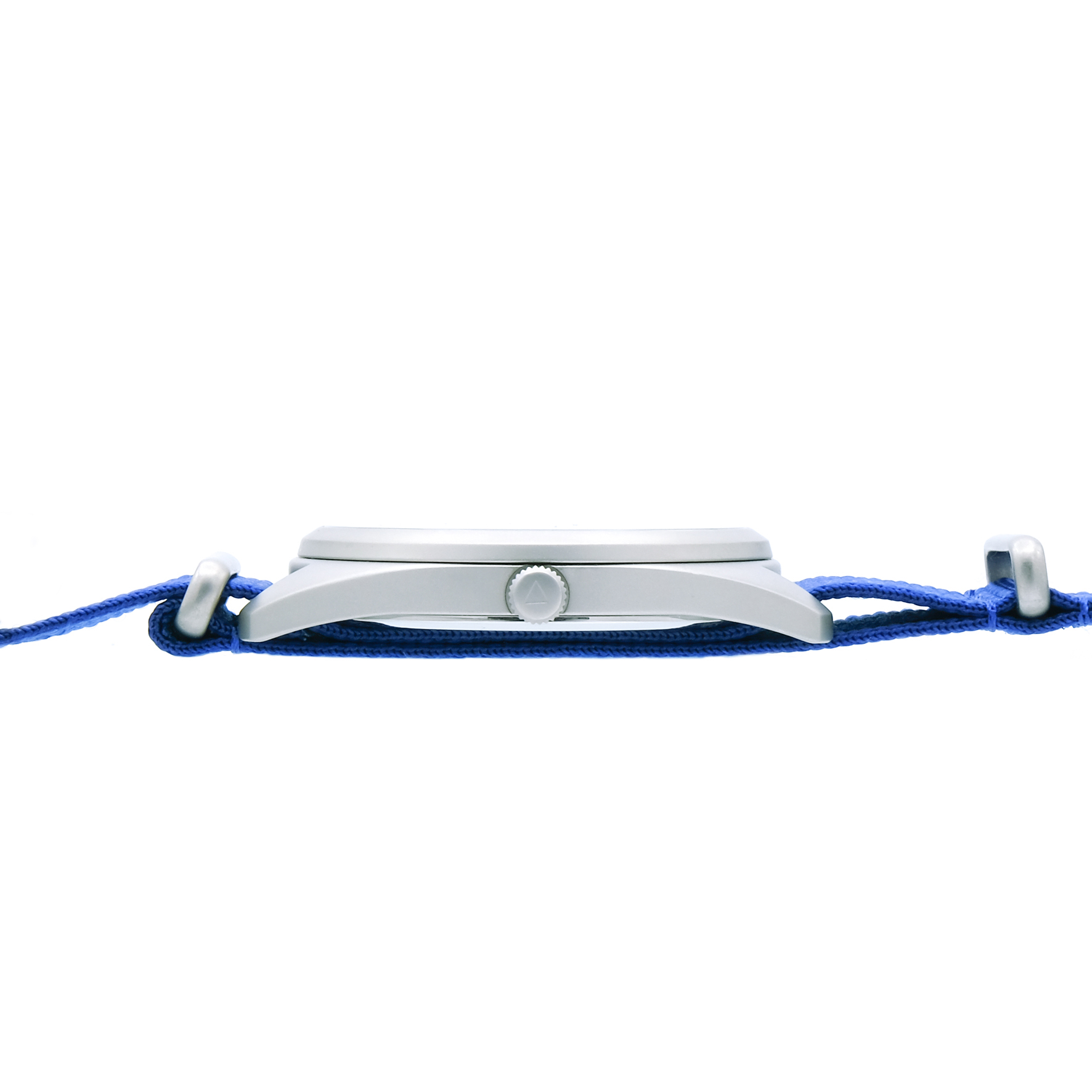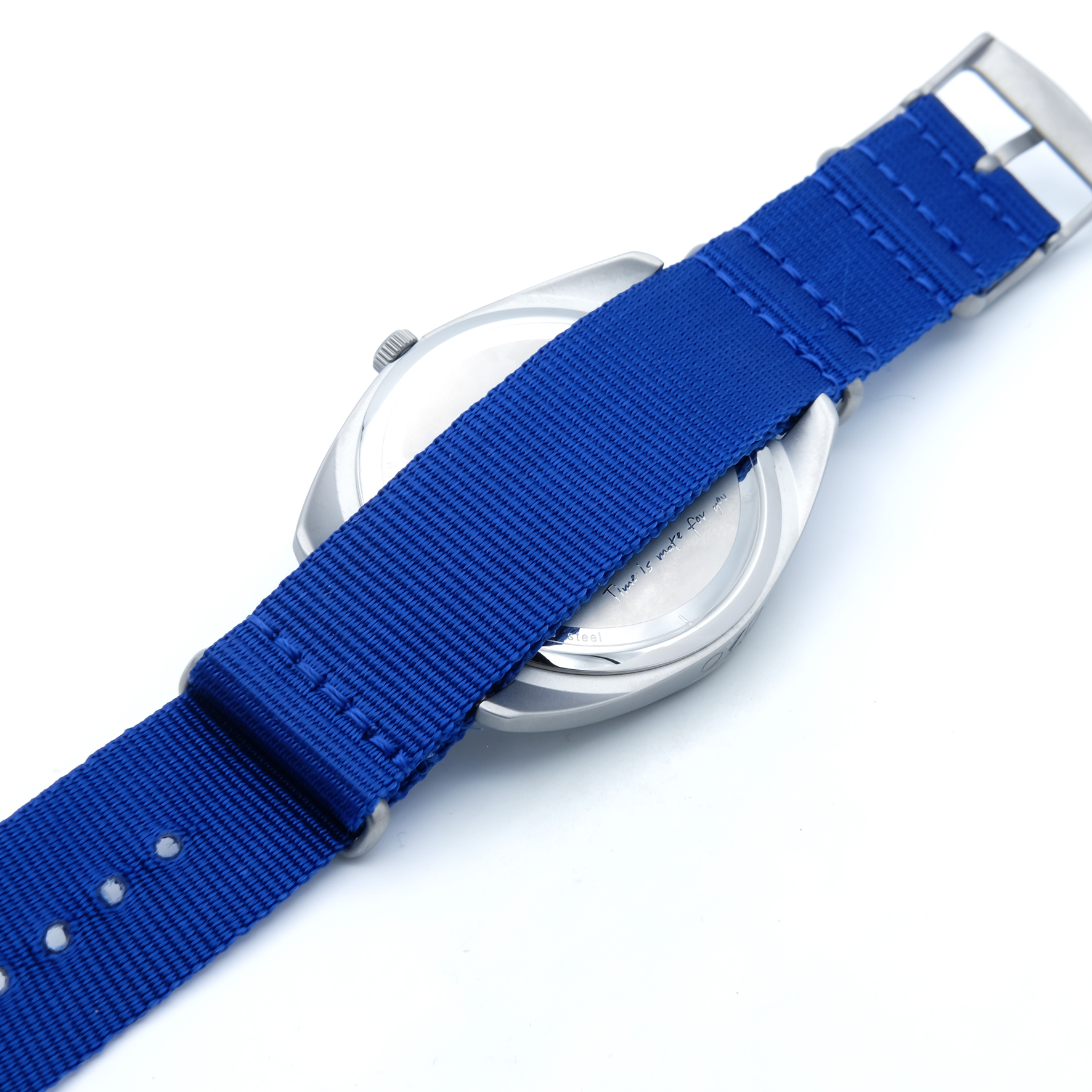 Ich bin mit einem blauen Nylonarmband ausgestattet
